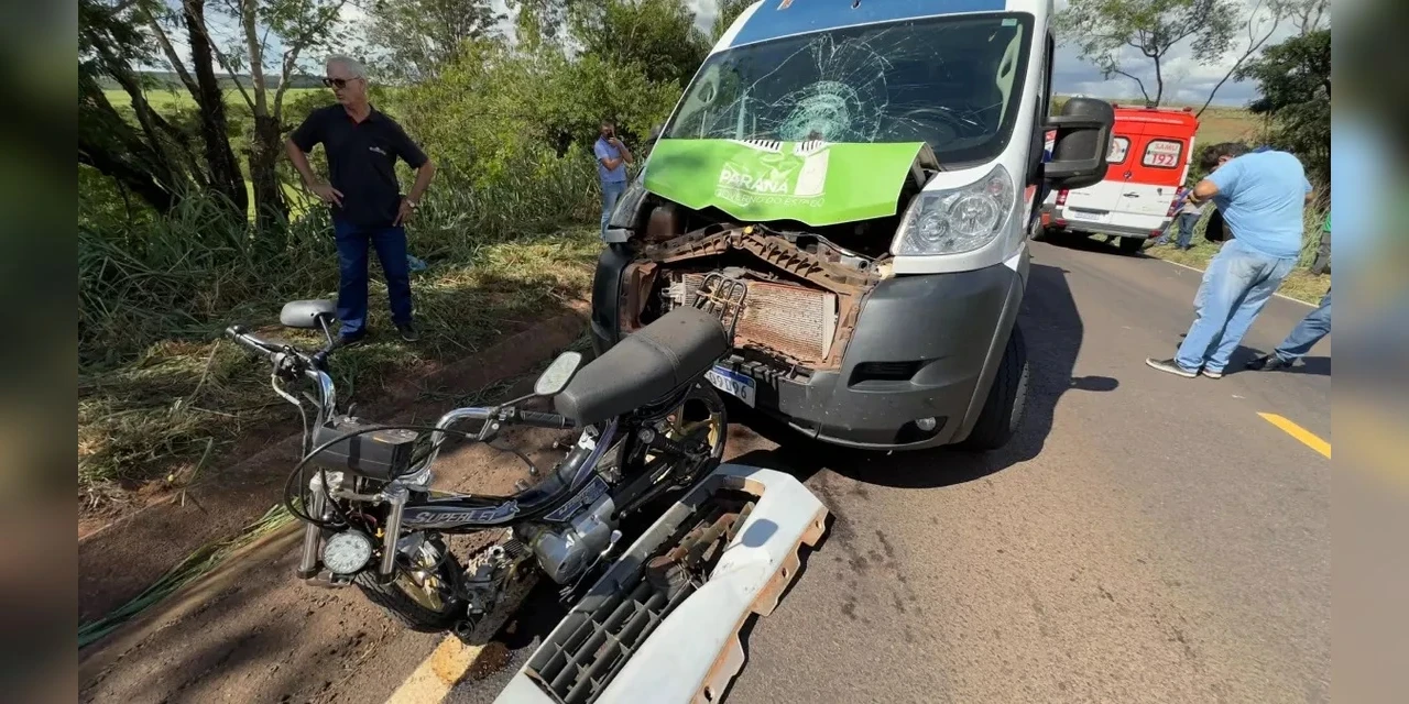 Um motociclista ficou gravemente ferido após um grave acidente registrado nesta quinta-feira (2), próximo a cidade de Rondon, no noroeste do Paraná. Ele bateu com a moto contra uma ambulância.