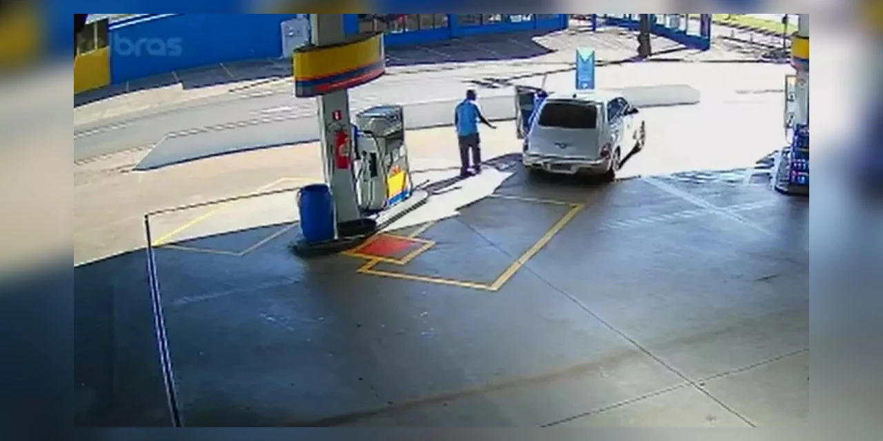 Em determinado momento, conforme as imagens, ele mexe no porta-malas, entra no veículo e dois frentistas ficam ao lado da porta do motorista. Um dos funcionários se aproxima mais do interior do automóvel. O condutor acelera e o arrasta por alguns metros, antes de fugir com a porta ainda aberta.
