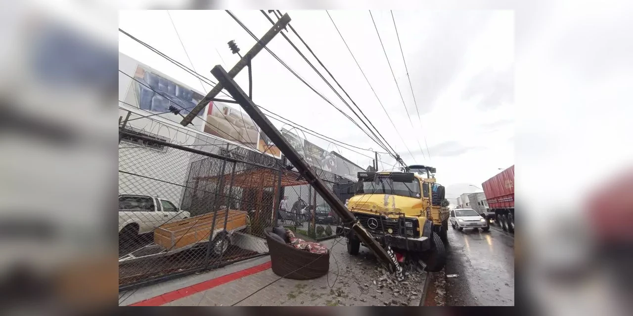Um motorista bateu contra um poste, nesta quinta-feira (30), em Londrina, no norte do Paraná. O acidente aconteceu na Avenida Brasília, zona oeste da cidade. Em entrevista à equipe da RICtv Londrina, ele contou que, ao perceber a falha nos freios, o sinal estava fechado e vários carros estavam parados na via. Para evitar a colisão com outros veículos, ele desviou e jogou o caminhão contra um poste de energia elétrica.