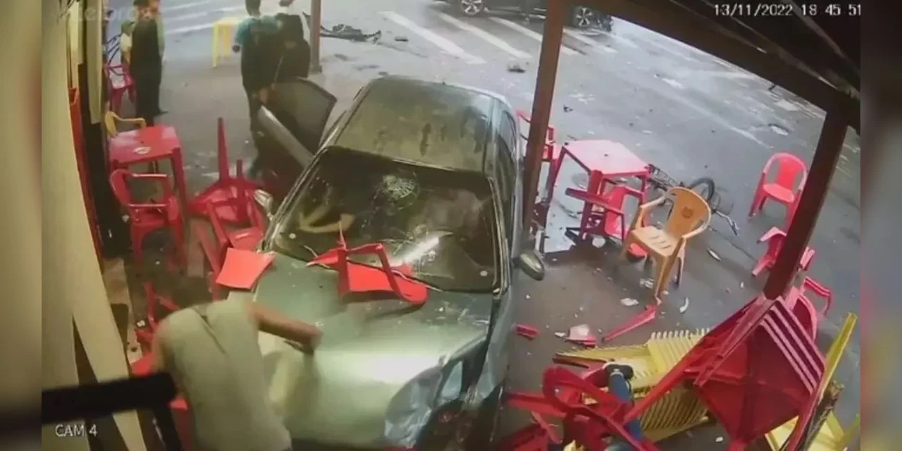 O acidenteA câmera de segurança do local registrou o momento em que o condutor atravessou a preferencial e atingiu as pessoas na área externa do estabelecimento. Antes de invadir o bar, o Honda Civic bateu em outro veículo no cruzamento.