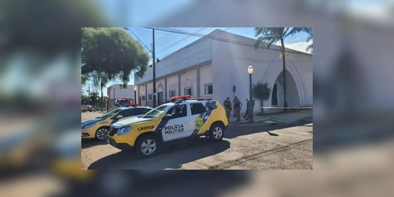 A Polícia Militar e Guarda Municipal estão mobilizados em frente à Paróquia Nossa Senhora de Fátima, em Arapongas, norte do Paraná, nesta quarta-feira (12).