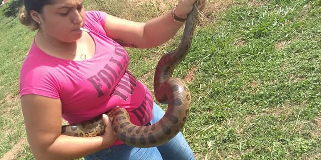 Uma dona de casa capturou sozinha uma sucuri de 2 metros de comprimento em um parque no Jardim Europa em Barretos (SP). Ao tentar colocar o animal dentro de uma caixa levada pelo Corpo de Bombeiros, Larissa Lara de Souza ainda foi picada na mão.