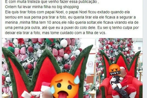 “Ontem fui levar minha filha no Big Shopping, ela quis tirar foto com o Papai Noel, o Papai Noel ficou excitado quando ela sentou em sua perna. Eu queria tirar, ele ficava a segurar a menina, minha filha tem 10 anos, ele não queria soltar, ficava virando ela de uma perna para outra, até que eu a puxei do colo dele”.