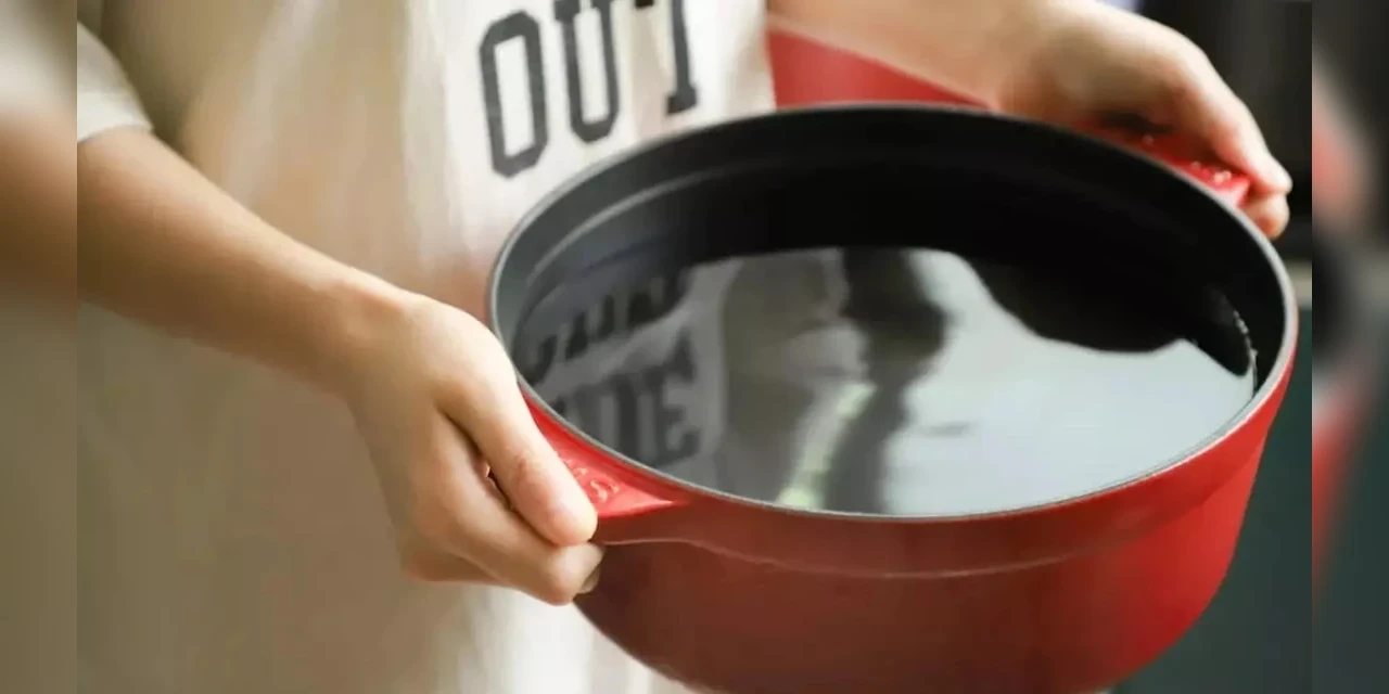 Nas imagens, é possível ver que a adolescente está sentada no chão, quando a mulher despeja a água quente sobre ela.