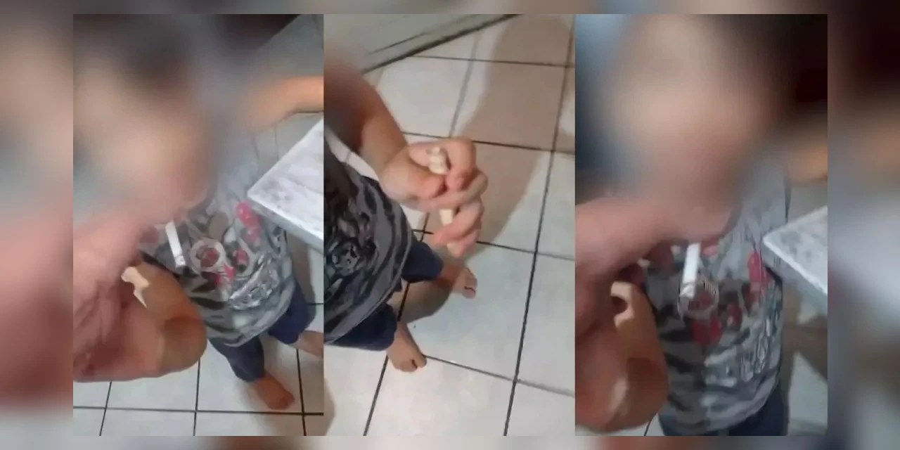 Um vídeo de um pai oferecendo cigarro para o filho de apenas 4 anos causou polêmica nas redes sociais nesta semana. A gravação, feita na região de Maringá, no noroeste do Paraná, mostra o homem tentando colocar um cigarro na boca do menino. Nas imagens também é possível ver a criança com um canudo nas mãos, perto de um prato com pó branco, que pode ser cocaína.