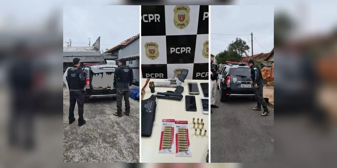 O trio foi preso nesta manhã (6) no bairro Vila São João, na casa dos suspeitos. No local, os investigadores encontraram um revólver, munições, um acessório de carregamento rápido do revólver, coldres, celulares e uma pistola de pressão.