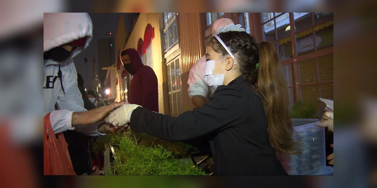 A família se juntou a organizações que entregam marmitas para pessoas em situação de rua. A entrega foi feita em frente ao Mercado Municipal de Curitiba.