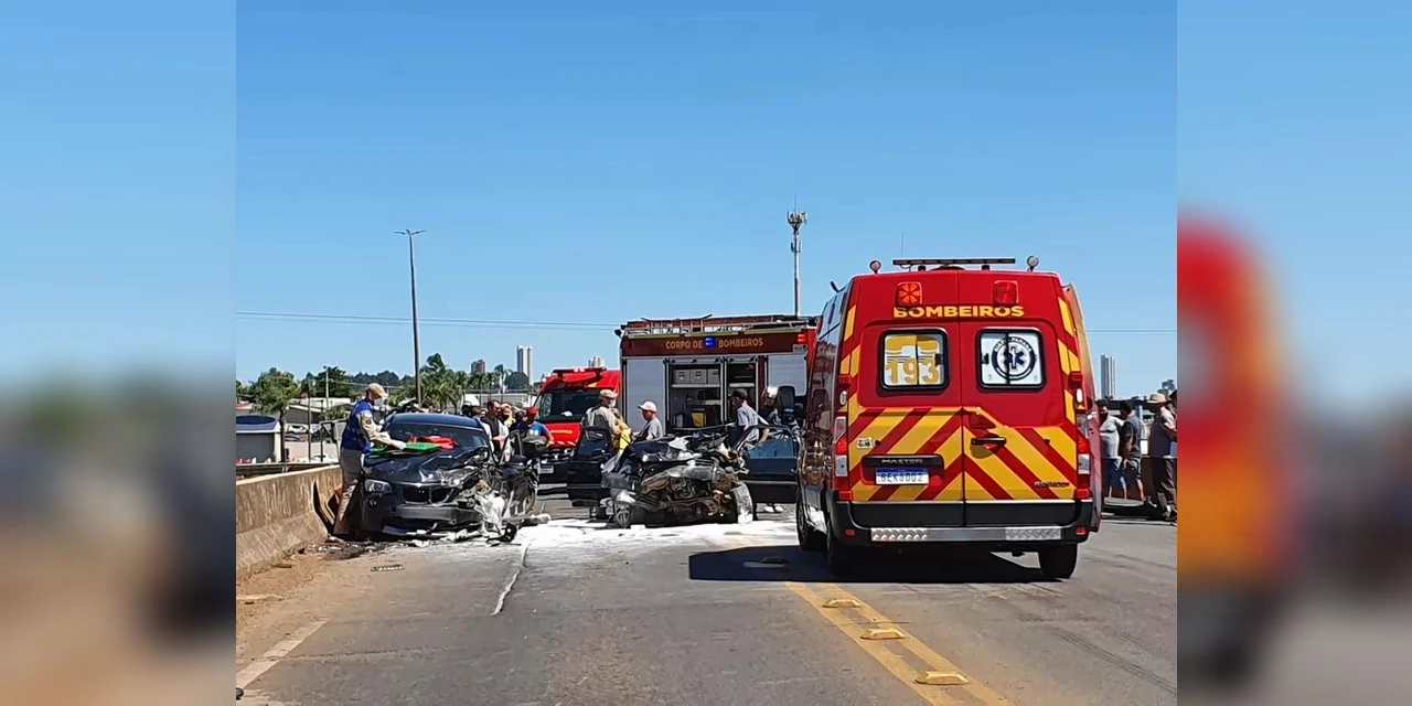 Segundo os bombeiros, a batida aconteceu no viaduto de acesso à cidade, por volta das 14h.