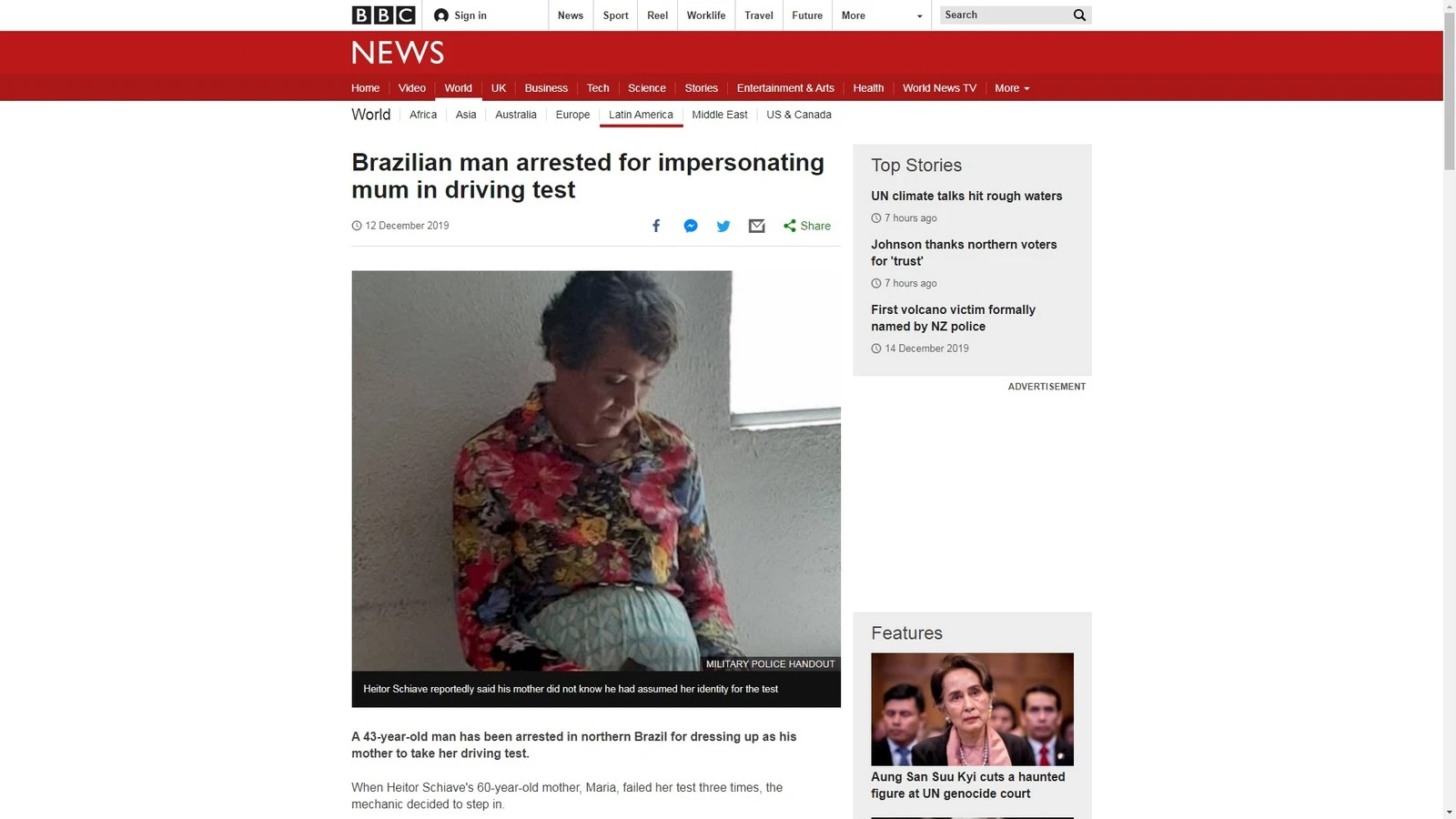 O site da rede BBC destacou que o homem tentou se passar pela mãe porque ela teria reprovado três vezes nas provas do Detran em Rondônia.