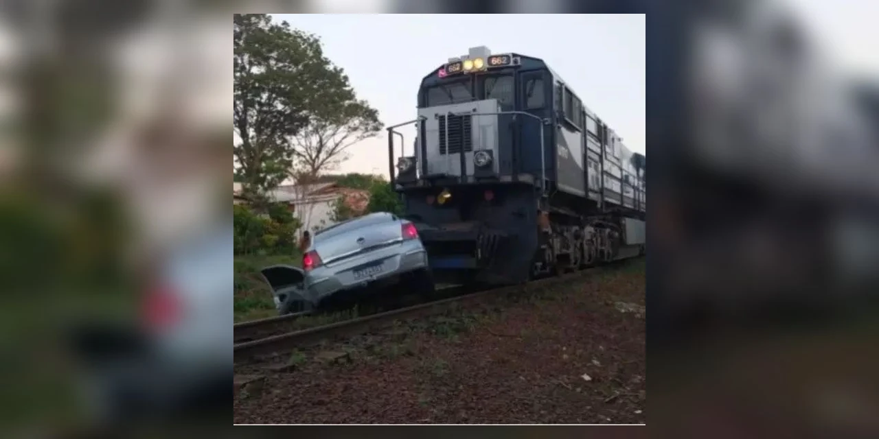 Um carro foi arrastado por aproximadamente 10 metros após ser atingido por um trem na manhã desta quinta-feira (13) em Mandaguari. O acidente aconteceu no bairro Jardim Esplanada. O motorista pulou do veículo quando aconteceu a batida.