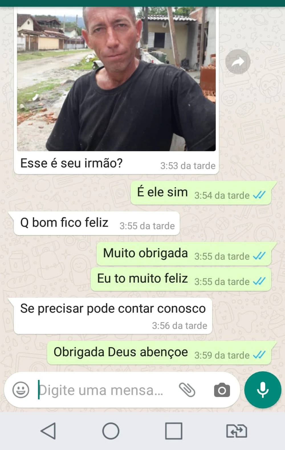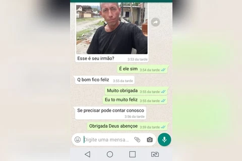 Pouco tempo depois da postagem, Adriane recebeu a mensagem de um senhor que morava próximo ao local de trabalho do irmão. "Era muito difícil não saber se ele estava vivo, ou se estava passando alguma necessidade", relata.