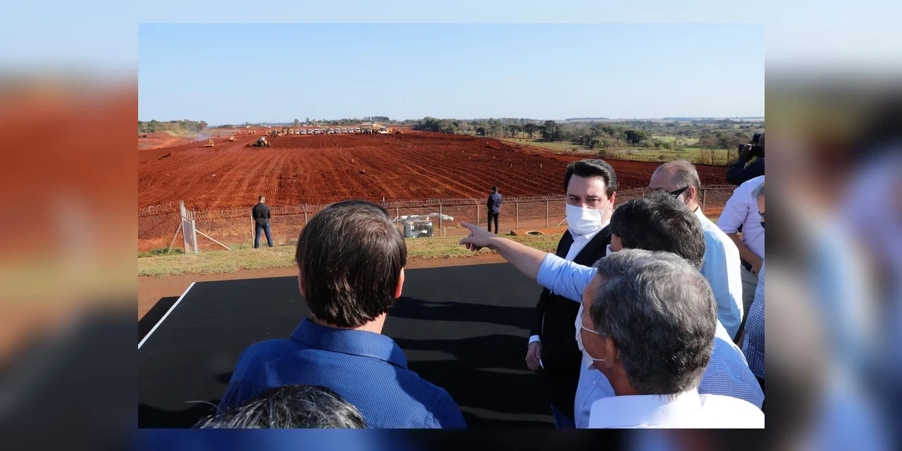O presidente Jair Bolsonaro e o governador Carlos Massa Ratinho Junior vistoriaram nesta quinta-feira (27) as obras da nova pista do Aeroporto Internacional de Foz do Iguaçu, que já alcançaram 40%. A nova estrutura proporcionará mais voos para o município, concorrendo com destinos do mundo inteiro, e é parte do projeto de transformar o Paraná no hub de distribuição da América do Sul.