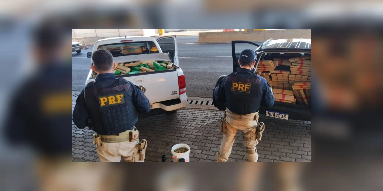 A Policia Rodoviária Federal (PRF) apreendeu, na manhã desta terça (20), em Cascavel (PR), mais de uma tonelada de maconha, 36 quilos de skunk, 1.041 munições e um carregador, de calibres .762, além de duas lunetas de precisão para armas de fogo. O carregamento era transportado em dois veículos que viajavam juntos, de Foz do Iguaçu (PR) para Joinville (SC).