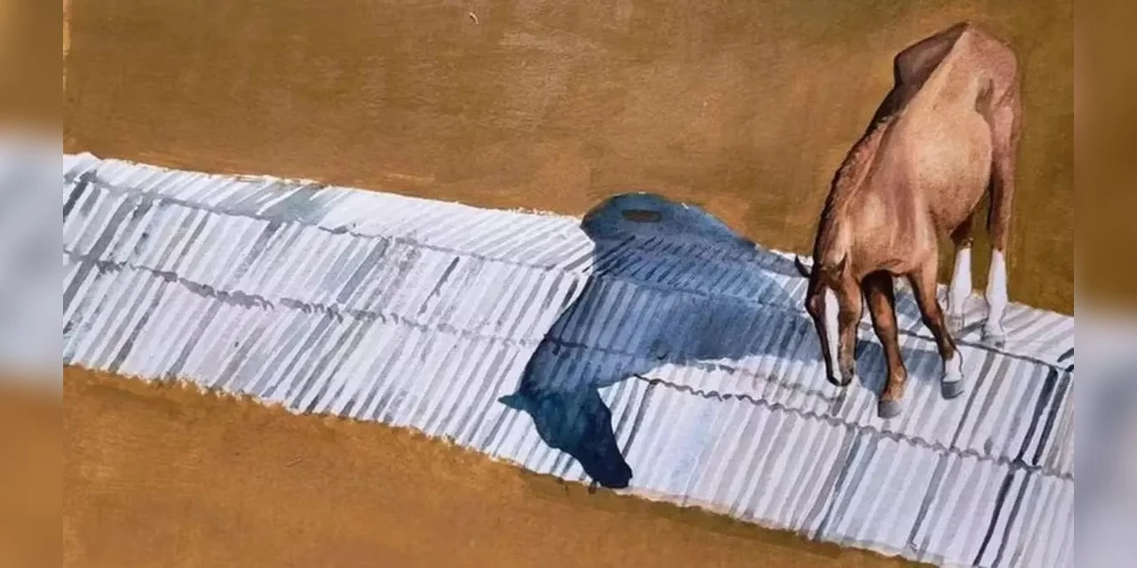 A imagem do cavalo Caramelo ilhado em cima de um telhado, na cidade de Canoas, no Rio Grande do Sul, se tornou uma pintura, e o quadro foi leiloado por R$ 130 mil, para ajudar as vítimas das enchentes no estado.