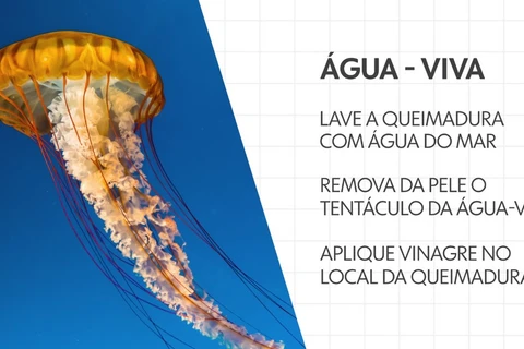 O Corpo de Bombeiros orienta que, em caso de contato com água-viva ou caravelas, o banhista deve limpar o local da queimadura com água do mar, sem esfregar.