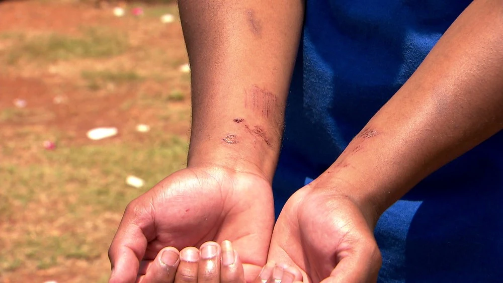Edilson ficou ferido ao entrar no terreno para tentar salvar o menino — Foto: Reprodução/TV Globo[/caption]Edílson relata que passava em frente ao local quando ouviu gritos da vizinhança e soube do ocorrido.