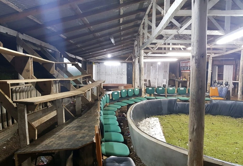 A polícia descobriu o local após investigações. No momento da operação, dezenas de pessoas foram encontradas na rinha. Um quadro que existia no local estava com os nomes dos apostadores e o valor das apostas.