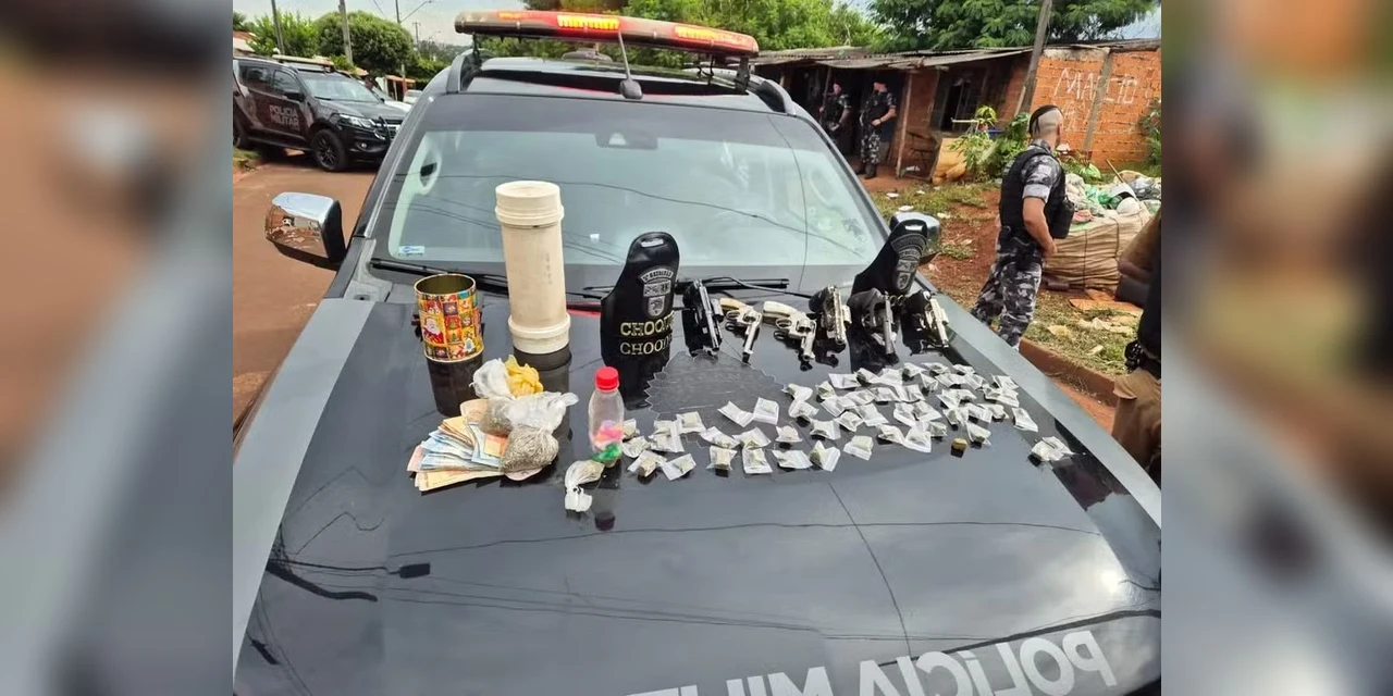 No imóvel, os policiais encontraram seis armas, porções de maconha, crack e pinos de cocaína. Os produtos foram apreendidos.