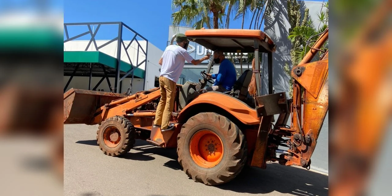 "Eu ando sempre de retroescavadeira, trabalho com ela. Minha vida é com ela, vou até no supermercado, em tudo que é lugar com ela."