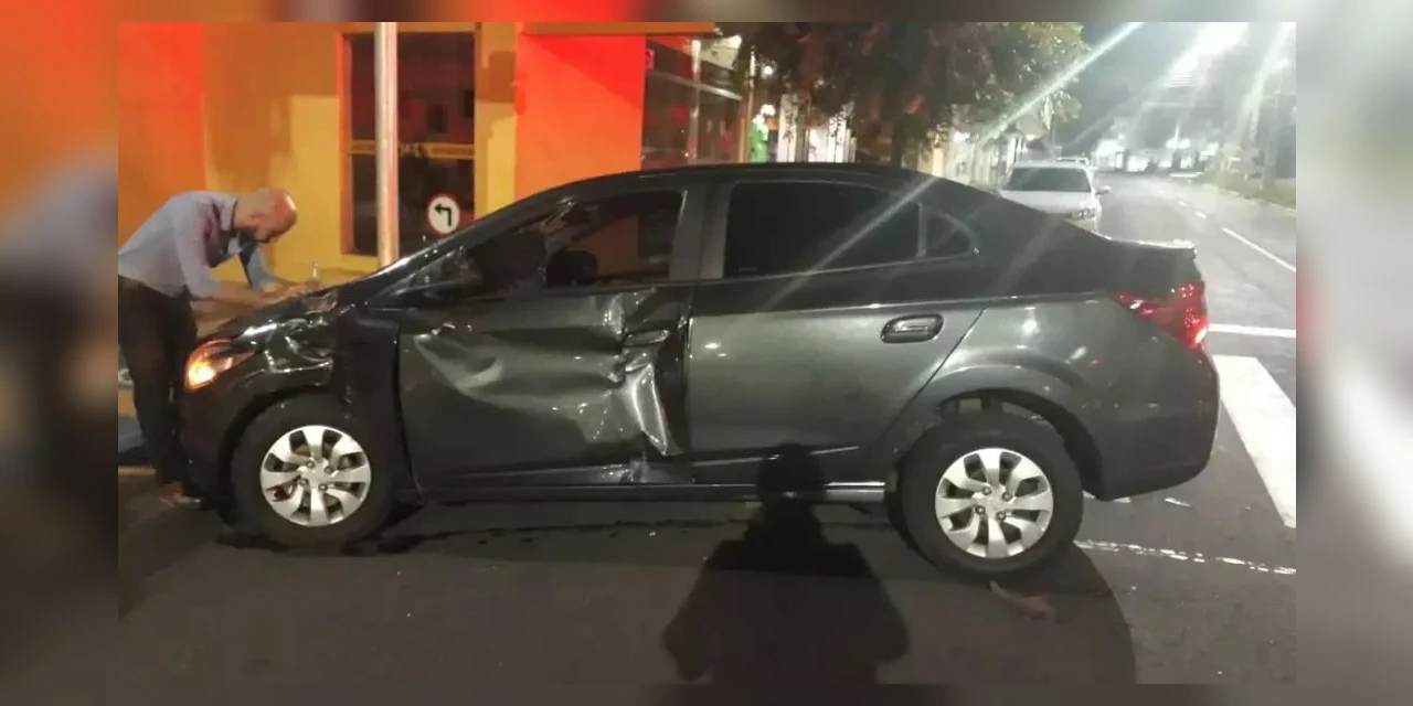 Um motociclista de 19 anos ficou ferido após bater na lateral de um carro em um cruzamento de Umuarama. O acidente aconteceu pouco antes da meia-noite de segunda para terça-feira (7 e 8). O motociclista não tinha habilitação.