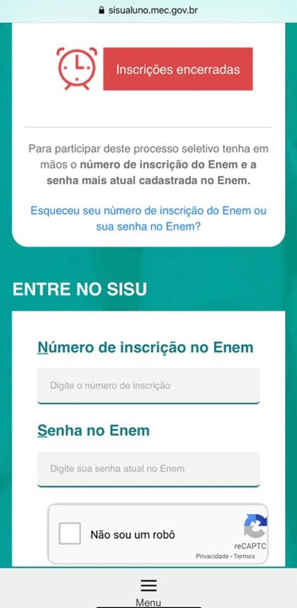 Nas redes sociais, usuários reclamaram da mensagem que surgia logo depois de clicarem no botão 'Fazer inscrição'. Os estudantes eram redirecionados para uma página com o aviso de que as "inscrições estão encerradas". Quem conseguia incluir os dados pessoais para prosseguir com a inscrição reclamou de falhas na autenticação.