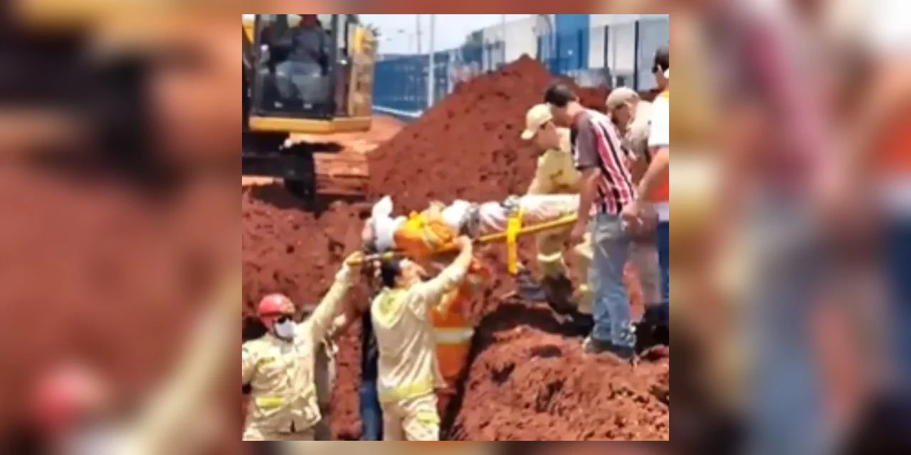 Dois trabalhadores ficaram soterrados em uma obra na Rua Tico Tico Rei, em Arapongas, no norte do Paraná, na tarde desta terça-feira (21). Eles estariam trabalhando em uma valeta no momento do acidente.
