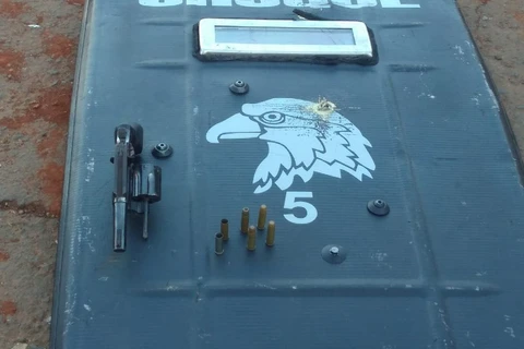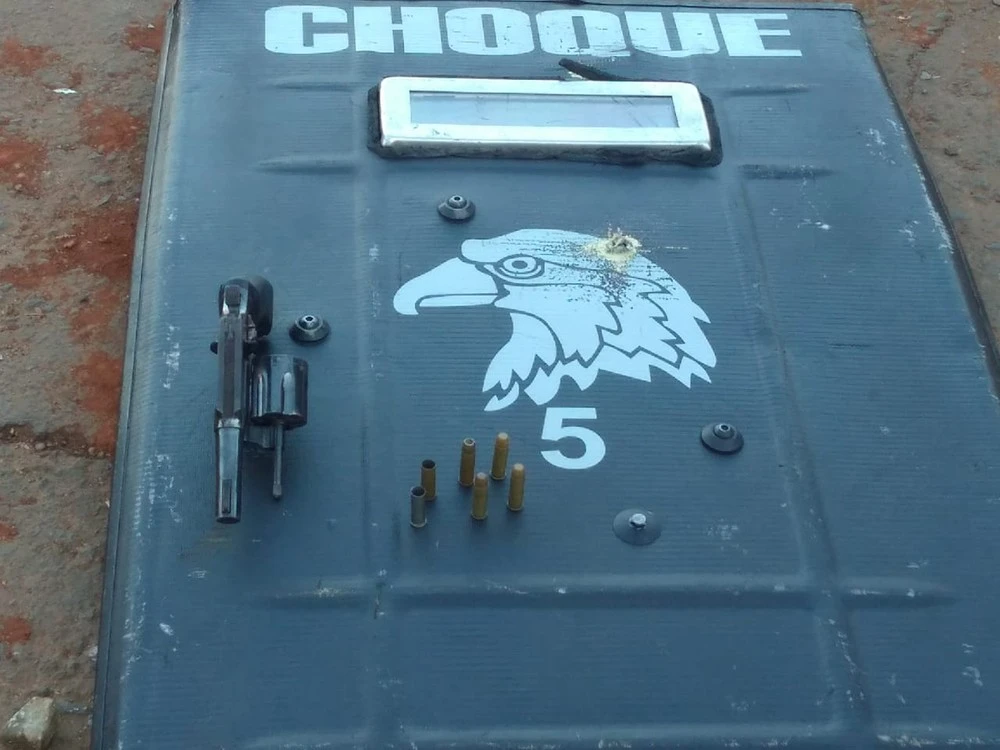 Segundo a PM, um escudo balístico foi atingido durante o confronto, em Londrina (Foto: Dionisio Mathias/RPC Londrina)[/caption]