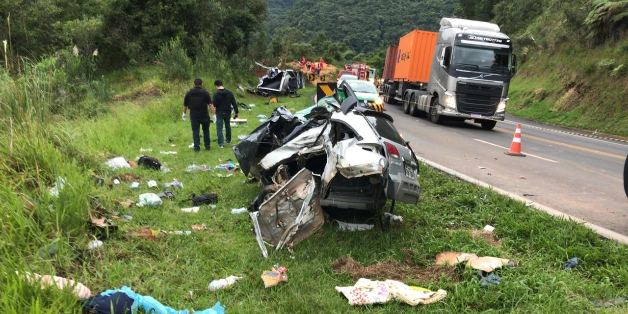 A batida envolveu dois carros e uma carreta no trecho da Serra da Esperança.