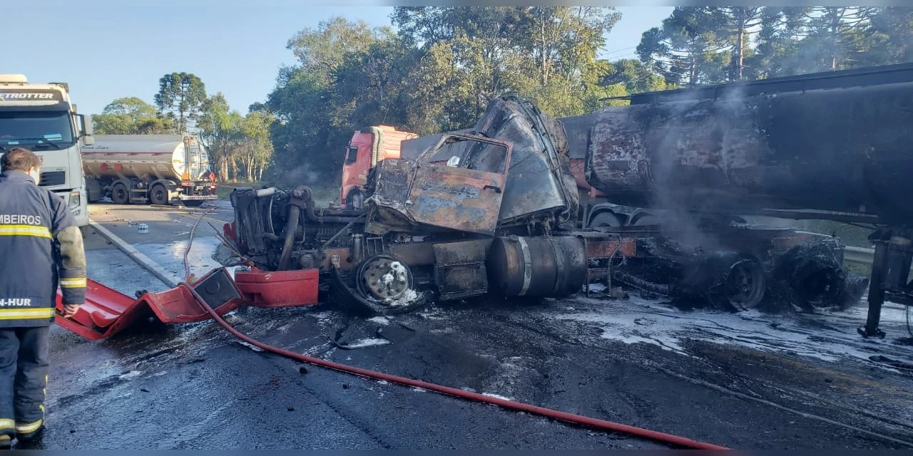 Cinco caminhões se envolveram em um acidente na BR-476 em São Mateus do Sul, na região sul do Paraná, na manhã desta quarta-feira (20), de acordo com os bombeiros. Uma das carretas pegou fogo.