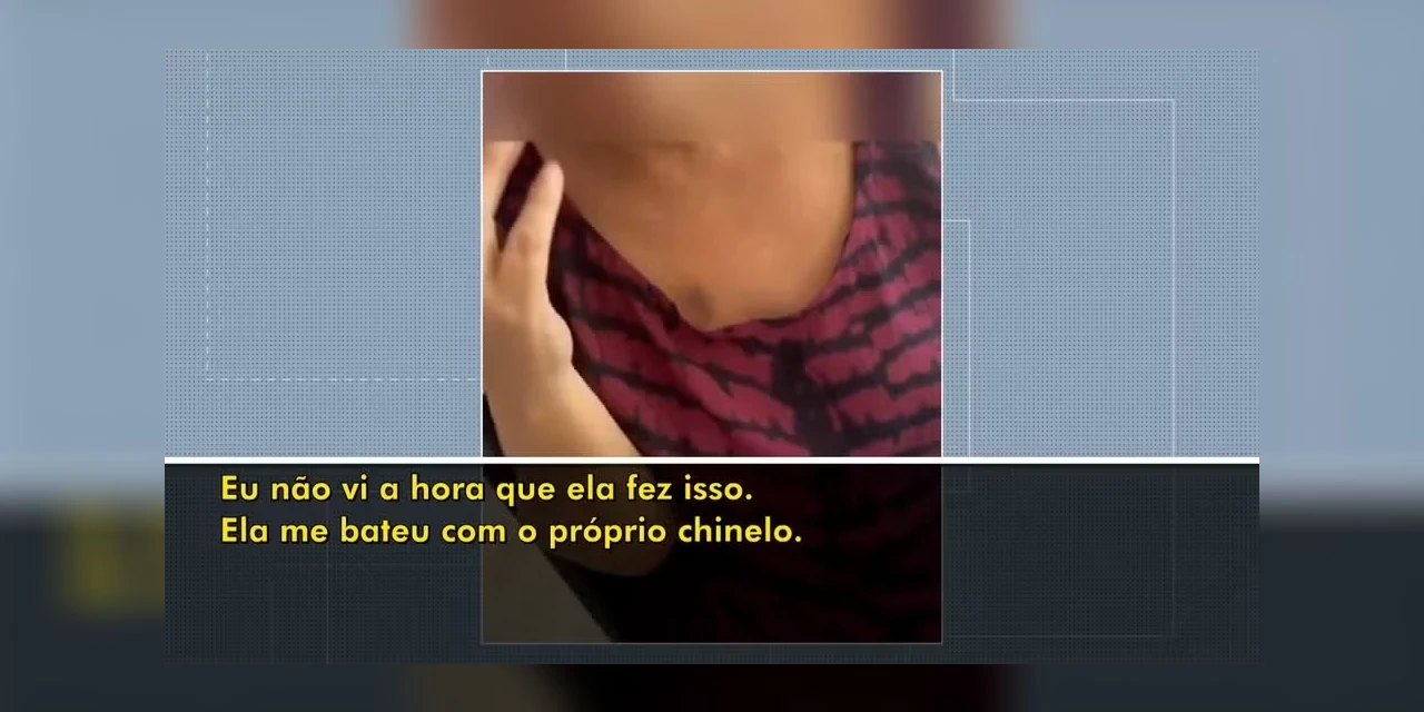 "Ela me bateu com meu próprio chinelo", afirma a vítima, em trecho de vídeo obtido pela RPC.
