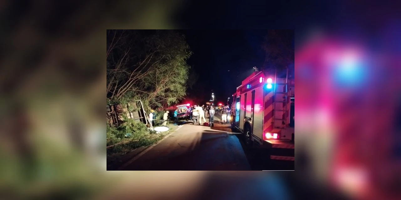 Ao todo, vinte e duas pessoas estavam no micro-ônibus que tombou às margens da PR-317, em Nossa Senhora das Graças, noroeste do Paraná, na noite desse domingo (31).