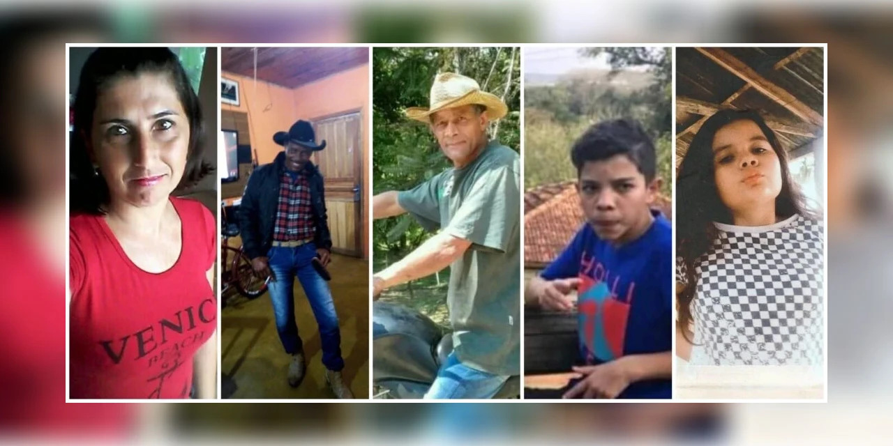 Geovana, de 11, e Fernando, de 13, eram filhos de Dircio, de 58 anos. Kelli Nogueira, de 43, era namorada do homem, e Diordete, de 65, era amigo da família.