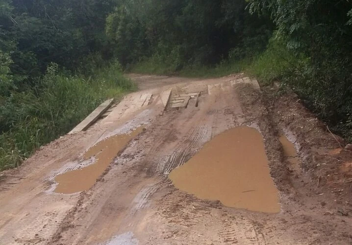“Onde havia um buraco enorme a equipe da prefeitura veio e simplesmente encheu de terra. Agora, além de torta, a ponte está lisa e ainda mais perigosa, com risco de que algum carro deslize rio abaixo”, conta.