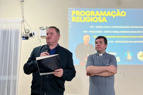 COM ASSESSORIAS - A tradicional Festa de Nossa Senhora das Brotas, que neste ano celebra sua 144ª edição, teve seu lançamento oficial ontem (28), no Espaço Padre Evaldo, anexo ao Santuário Diocesano de Nossa Senhora das Brotas, em Piraí do Sul. O momento reuniu autoridades, fiéis e a comunidade local, e, foi conduzido pelo reitor do Santuário, Padre Luiz Mirkoski, anfitrião da noite.