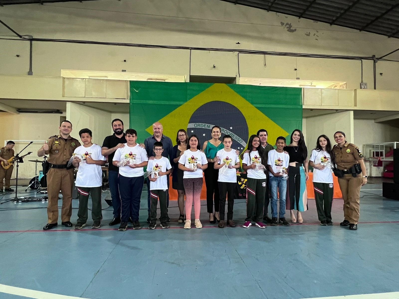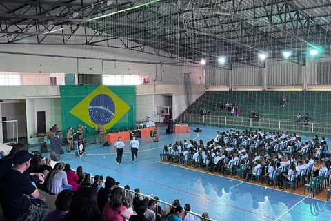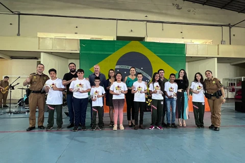 COM ASSESSORIAS - A solenidade de formatura dos alunos participantes do Programa Educacional de Resistência às Drogas e à Violência (PROERD), desenvolvido pela Polícia Militar dentro das escolas públicas e privadas, foi realizada na manhã de sexta-feira (16), no Ginásio de Esportes Samuel Milléo.