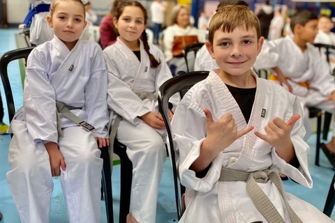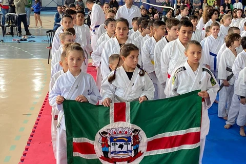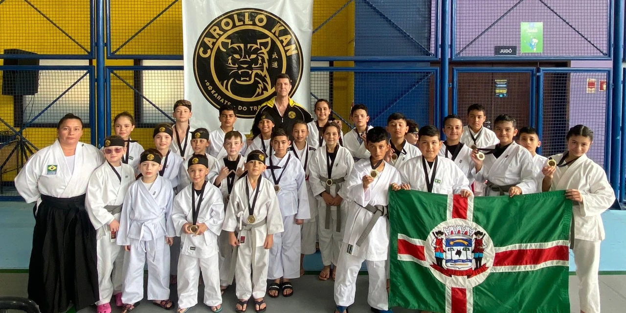 COM ASSESSORIAS - No sábado passado (3), os alunos da Escola de Karatê da secretaria de Esportes e Turismo de Piraí do Sul e do Dojo SM, participaram do 3º Festival de Karatê Karollokan, realizado no Colégio Marista Santa Maria, em Curitiba, onde disputaram oito categorias, dos 6 aos 14 anos, conquistando bons resultados em várias delas e levando 27 medalhas, sendo 8 de ouro, 9 de prata e 10 de bronze.