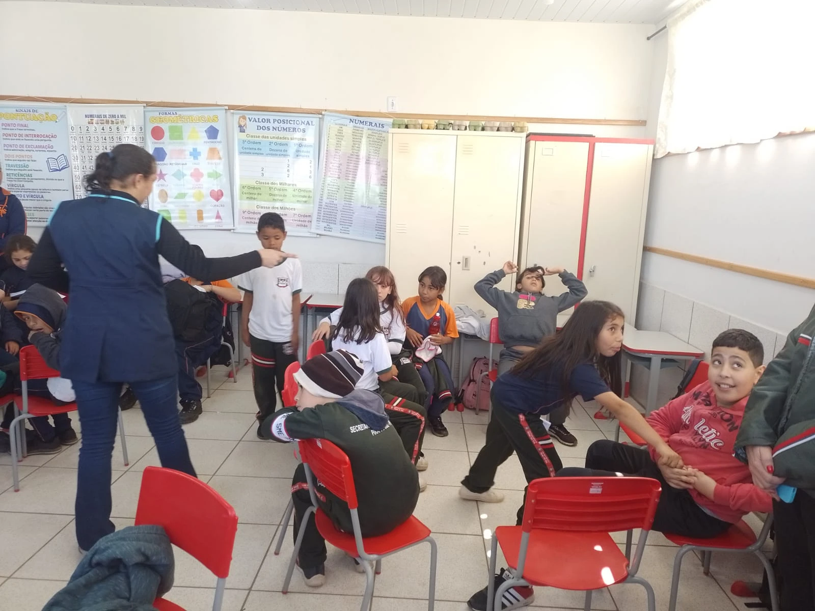 Representando a secretaria Municipal de Educação, as professoras Danielle Miranda, Vilma Krubniki, Ângela Hudzinski e Daniele Campos também falaram com os alunos na manhã de hoje.