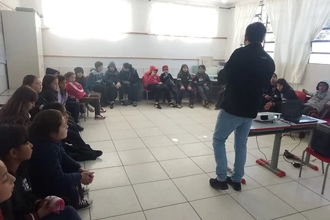 Na manhã de hoje (04), os alunos receberam a visita do diretor do portal Correio dos Campos, Pedro Dalcol Filho, que falou um pouco sobre a trajetória do veículo que recebe mais de dois milhões de visitas todos os anos. No final do encontro, os estudantes tiveram a oportunidade de conversar com todos os profissionais de educação da escola que estão envolvidos no projeto.