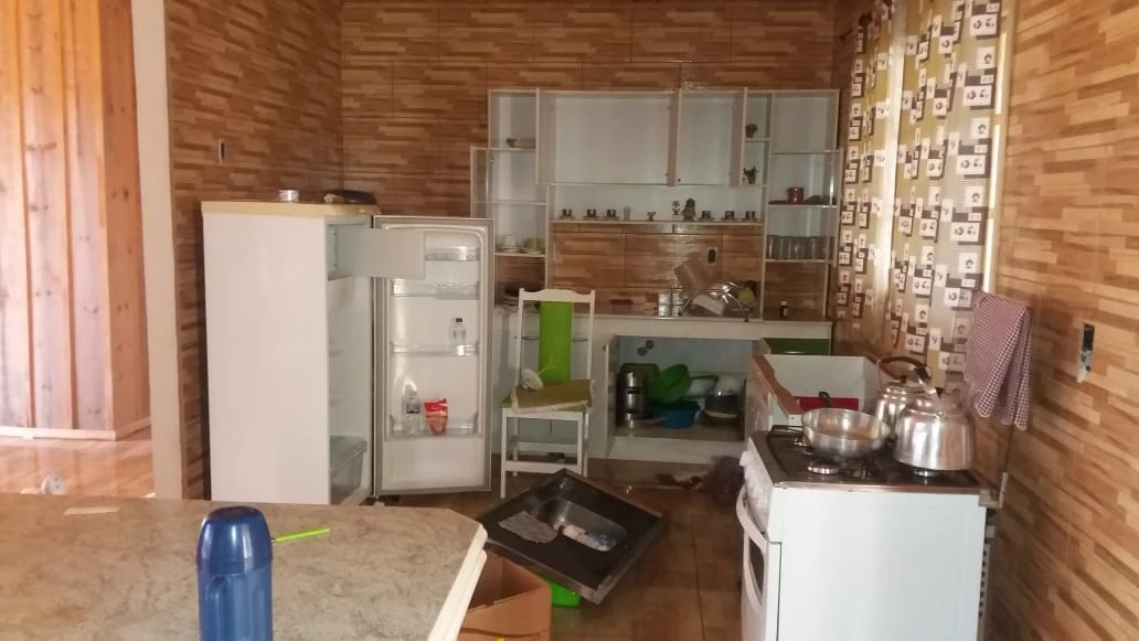 Na propriedade localizada no Passo do Barro os ladrões foram ainda mais ousados. Eles fugiram do local levando 8 panelas (duas de ferro), uma panela de pressão (roxa) e uma panela elétrica (preta), uma assadeira com tampa de ferro batido, botijão de gás cheio, todas as carnes que estavam no freezer do imóvel e ainda 17 das 20 galinhas que existiam na propriedade.