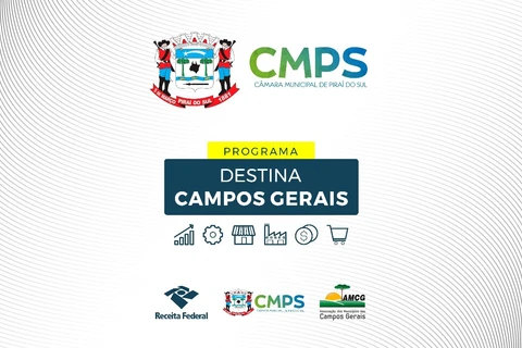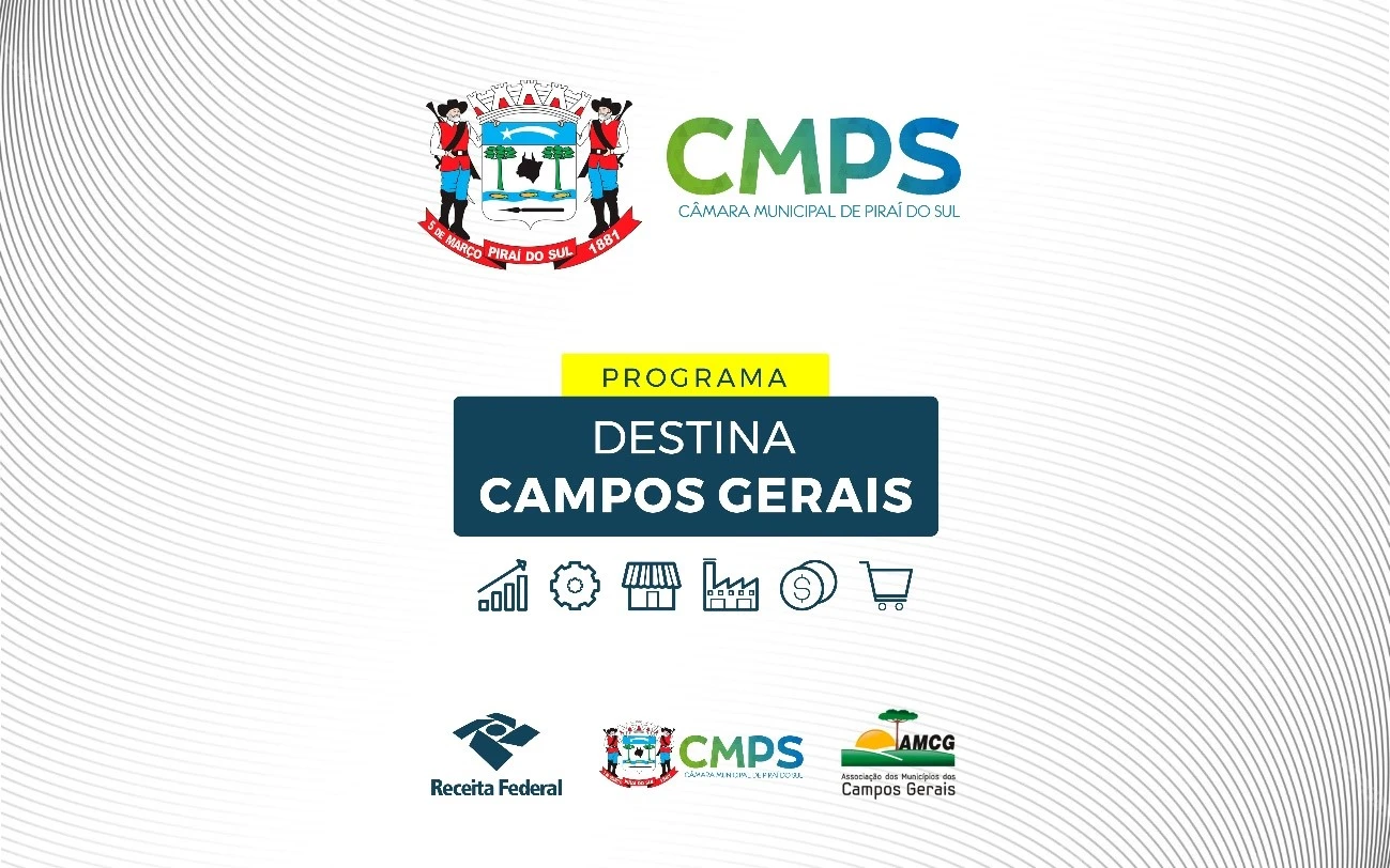 COM ASSESSORIAS - A Câmara Municipal de Piraí do Sul, em nome da Associação dos Municípios Dos Campos Gerais (AMCG), entidade comprometida com o desenvolvimento sustentável e o crescimento econômico da região, convida a todos os munícipes para apresentação do Programa “DESTINA CAMPOS GERAIS”.