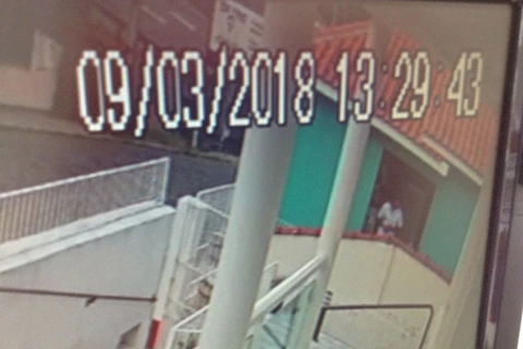 Algum tempo depois ele aparece na porta, olha para a rua, entra novamente e logo sai carregando uma centrífuga que, de acordo com o dono da empresa, pertencia a um de seus clientes.