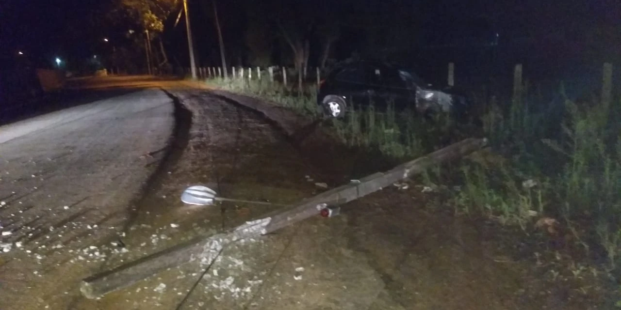 Segundo informações, o condutor do Celta teria perdido o controle do veículo em uma curva e se chocado violentamente contra o poste que caiu sobre a lateral da via.