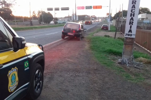 De acordo com a PRF, o veículo GM Corsa com placa de Piraí do Sul permaneceu no local depois de ser abandonado pelo condutor que não foi localizado.