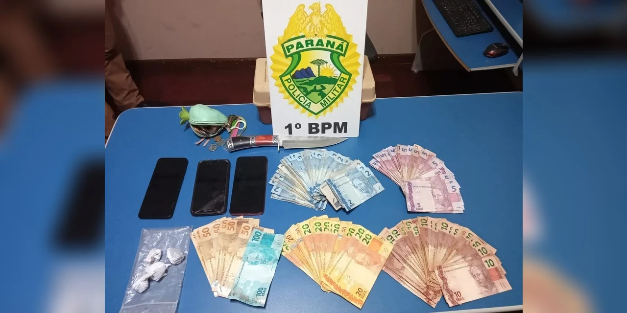 As buscas no imóvel revelaram a existência de buchas de maconha, dinheiro e um punhal. Além da droga e dos materiais encontrados, três aparelhos celulares localizados na residência também foram apreendidos.