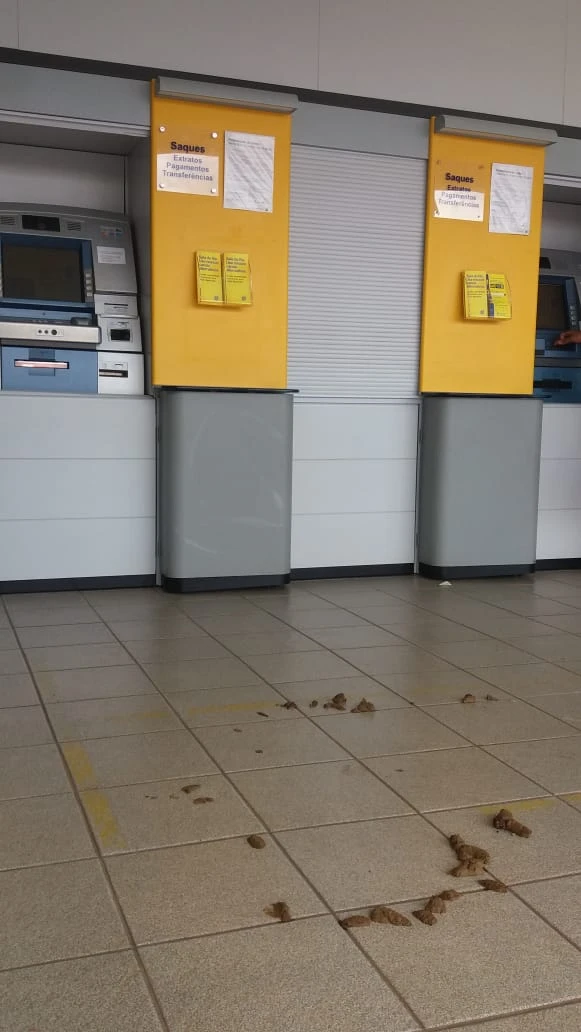 Segundo uma das pessoas que esteve na agência durante o dia de ontem, fezes de cães podiam ser vistas espalhadas pela unidade. “O mau cheiro estava muito forte e a situação foi repassada para os responsáveis pelo banco”, disse.