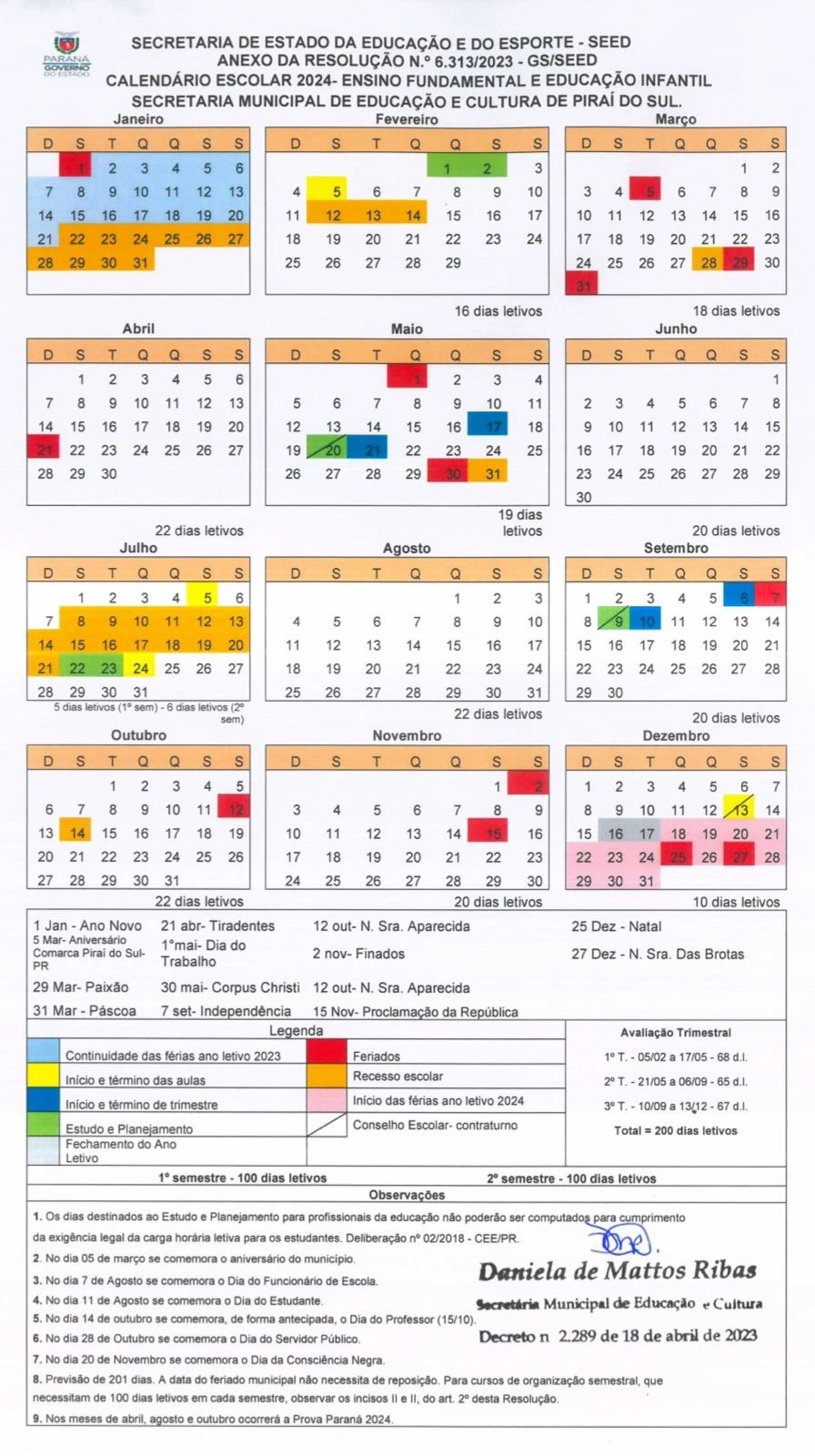 Calendário - O calendário escolar para o ano de 2024 foi elaborado com dedicação e cuidado, contemplando todas as atividades pedagógicas, períodos de avaliação, estudo, planejamento e eventos cívicos que enriquecem o ambiente educacional em nossas instituições de ensino.