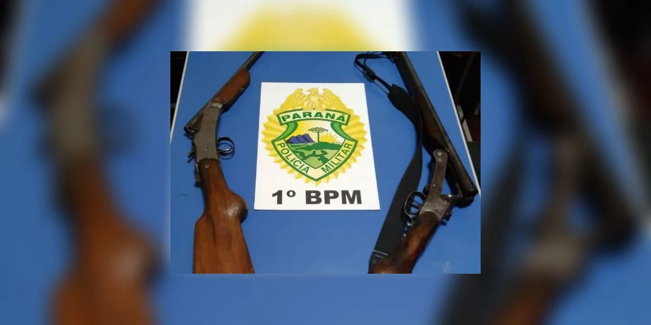 Durante a abordagem ao suspeito, que já estava em casa, foram encontradas e apreendidas duas espingardas, de calibre 28 e 38.