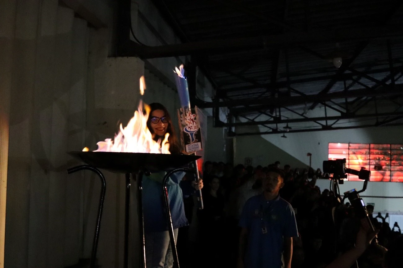 O prefeito Henrique Carneiro declarou oficialmente abertos os jogos, dando início à parte mais aguardada da cerimônia: a entrada da tocha e o acendimento da pira olímpica. O ato simbólico foi conduzido por Mitzi Vedan De Ramos, que protagonizou um momento de grande emoção e orgulho para todos os presentes.