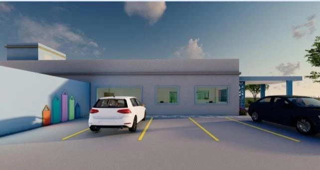 O projeto padrão tem 456,86 metros quadrados, capacidade para 36 crianças por período e os seguintes espaços: