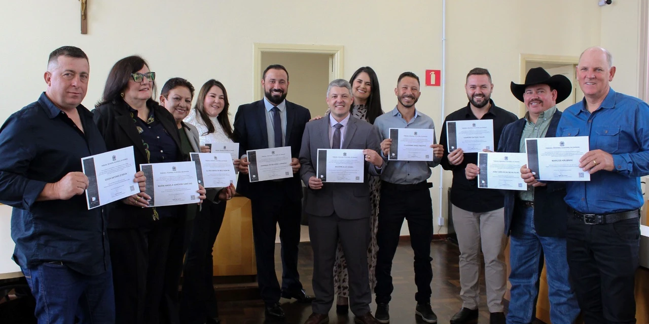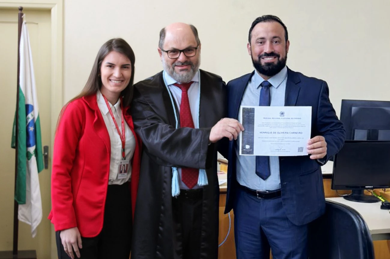COM ASSESSORIAS - Na manhã desta quinta-feira (5), o Salão do Júri do Fórum de Piraí do Sul reuniu autoridades e a comunidade local para a diplomação dos eleitos no pleito municipal de 2024. O prefeito reeleito Henrique Carneiro, ao lado do vice-prefeito Wagner Zadra, recebeu oficialmente o diploma que confirma a continuidade de seu mandato para os próximos quatro anos. Além deles, os vereadores eleitos também foram diplomados, consolidando o encerramento do processo eleitoral.